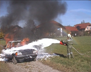Bei der Herbstübung 2004 wird ein Verkehrsunfall mit Bekämpfung eines Fahrzeugbrandes und Erstversorgung von Verletzen angenommen.